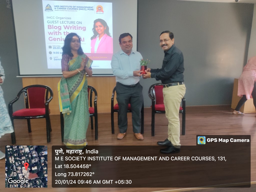 Sr. no. Guest Speaker Topic Timing 1 Shri Vishvanath R. Nanivadekar Improving Analytical Skills 10:30 am to 11:30 am 1. Dr.Santosh Deshpande IMCC Director welcoming our Guest speaker Shri Vishvanath R. Nanivadekar 2. IMCC students pinned in Improving Analytical Skills.