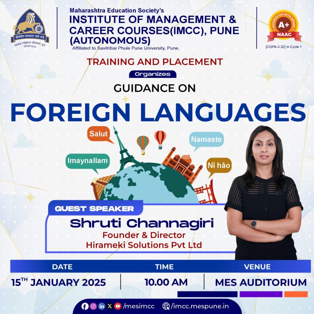 Topic: Guidance on Foreign Languages Date: 15-01-2025 Time : 10 am Venue: MES Auditorium