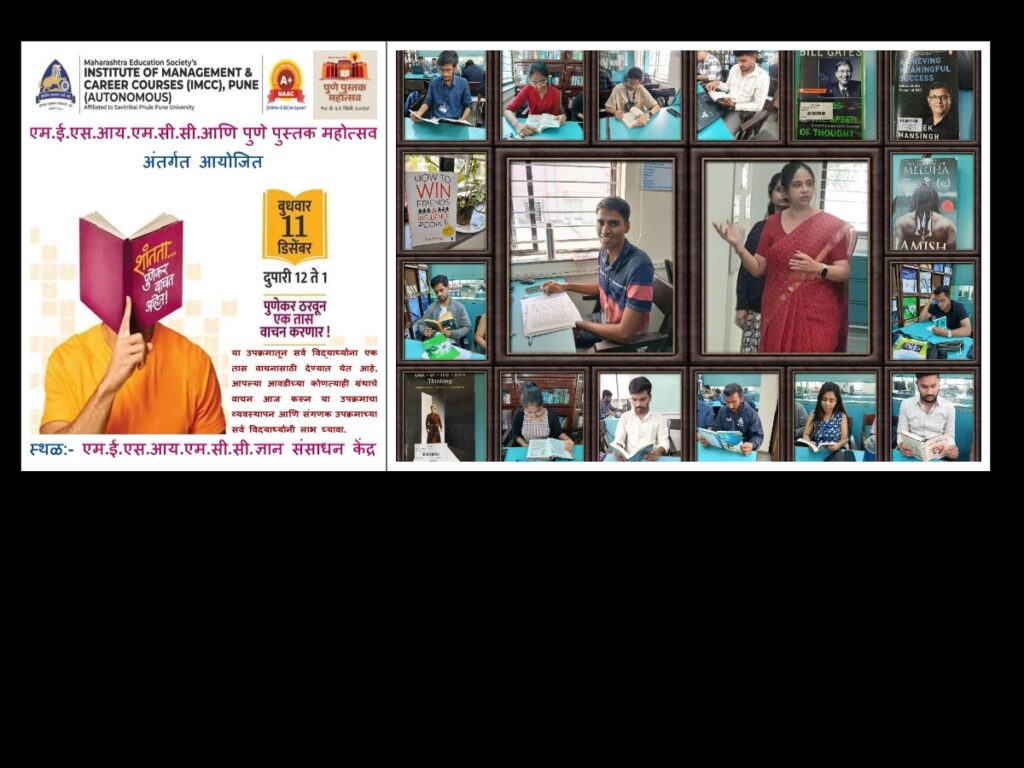 MES IMCC’s Knowledge Resource Center conducted a special session (11th December 2024) to promote the reading activity amongst the aspirants of MBA and MCA; Prof (Dr) Mrs. Meenal Oak started the activity by highlighting the benefits of reading and the effective results of reading in the current scenario with the reading of print and e-books.