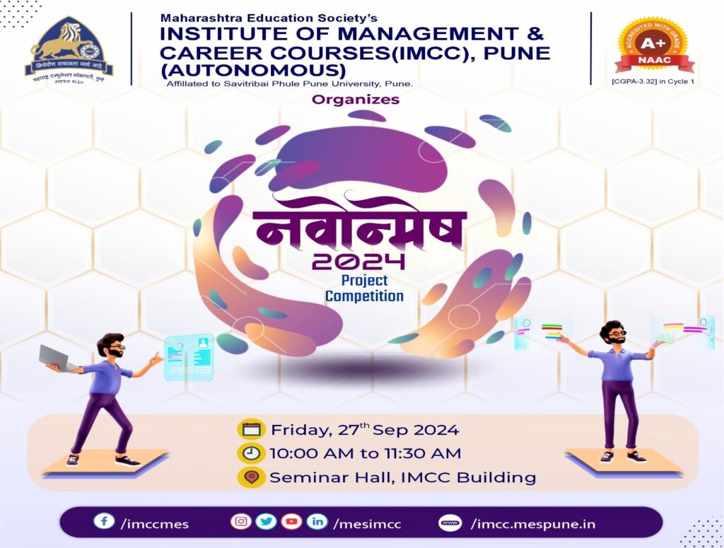 The MES Institute of Management and Career Courses (IMCC) successfully organized the “Navonmesh” Project Competition on 27Th September ,2024. This competition aimed to provide a dynamic platform for students to showcase their innovative talents and encourage the development of practical solutions that simplify everyday tasks.