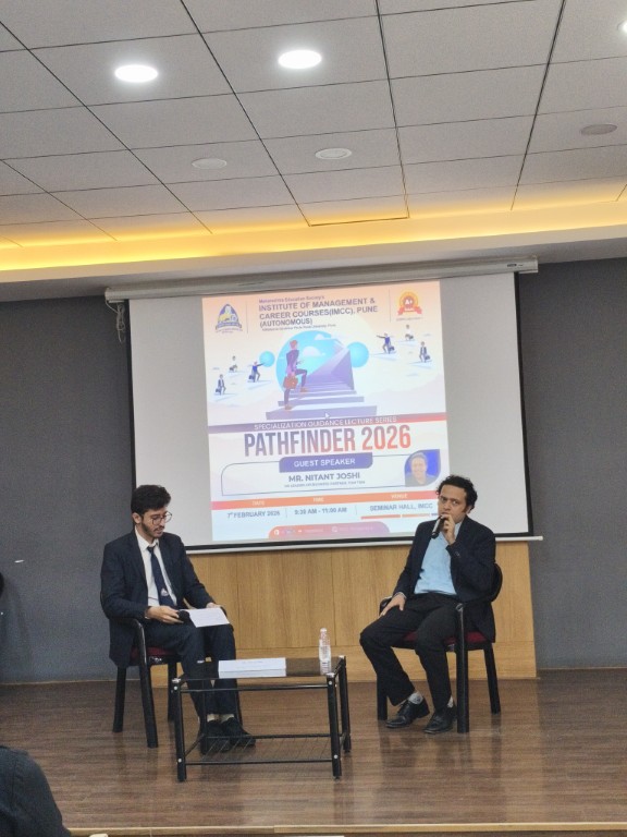 The Co-Curricular Cell of the IMCC MBA Department successfully organized the Specialization–Guidance Lecture Series titled “Pathfinder 2026” for MBA Semester II students. The series was designed to support students aspiring to specialize in Human Resources, Marketing, Business Analytics, and Finance. The primary objective of the initiative was to offer practical insights into the working environment, industry expectations, and career opportunities across these domains, thereby enabling students to make informed and confident decisions regarding their choice of specialization.