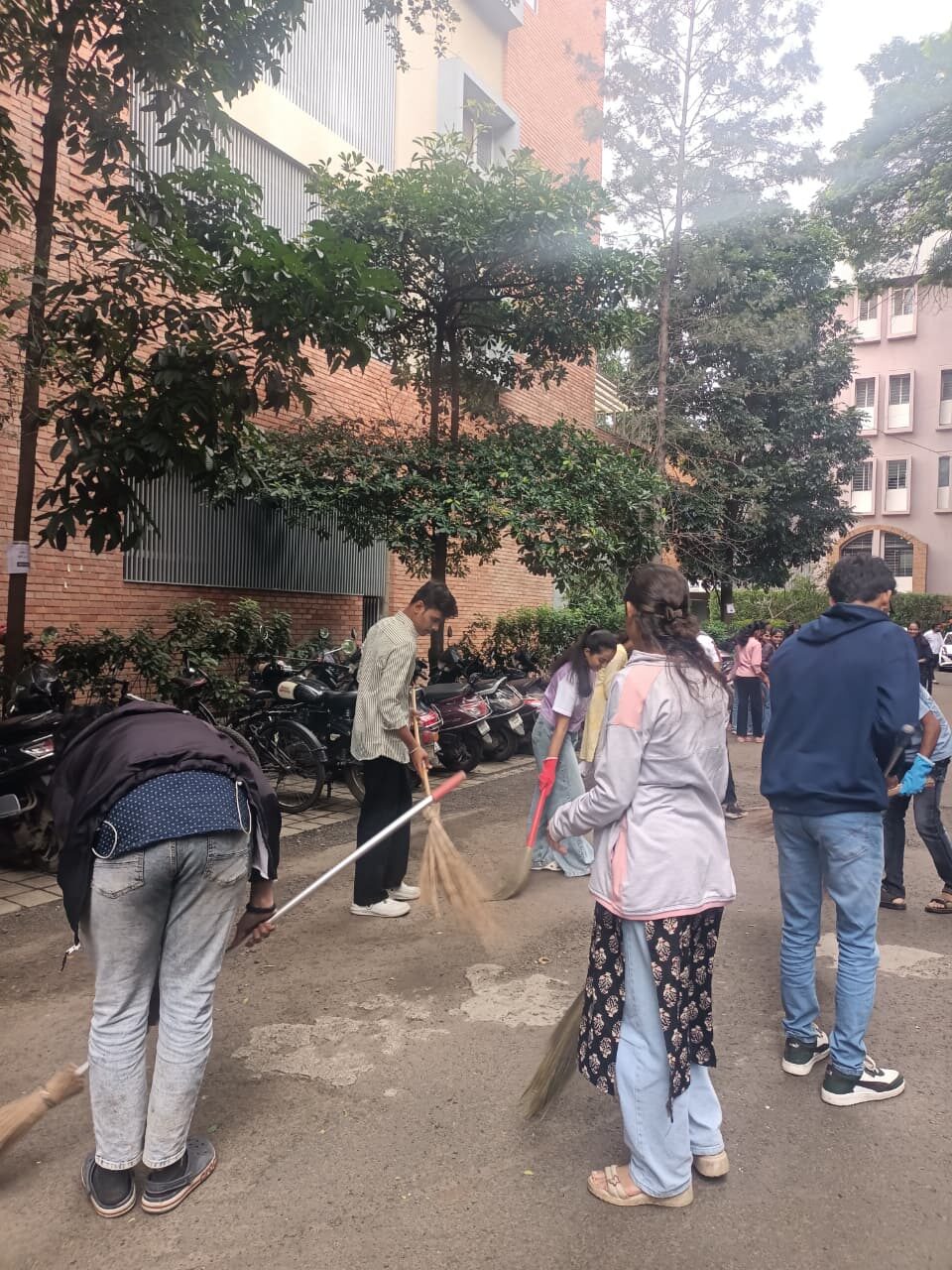 The drive aimed to spread awareness about Mahatma Gandhi’s vision of cleanliness and hygiene. Participants cleaned the institute campus and nearby public places.
