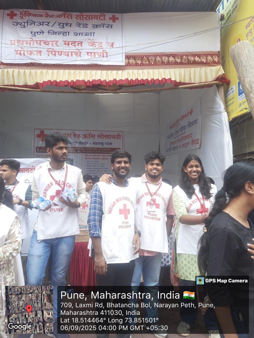 During the Ganpati Visarjan celebrations, the Red Cross organized a Water Donation Activity to support devotees and participants. MES IMCC Volunteers (students of SY MBA and SY MCA ) distributed clean drinking water at key immersion points, ensuring hydration and promoting public health. This thoughtful initiative helped manage the large crowds and intense heat, reflecting the commitment to community service and well-being during festivals.