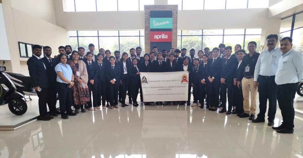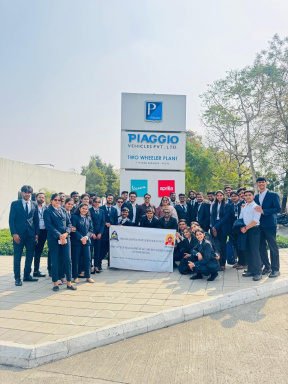 Second Year MBA students visited Piaggio Vehicles Pvt. Ltd., 2 Wheeler Plant, Baramati as part of their experiential learning initiative. The visit provided valuable exposure to large-scale two-wheeler manufacturing processes, including assembly operations, quality control systems and manufacturing practices. Students gained practical insights into how different management functions integrate within a production environment.