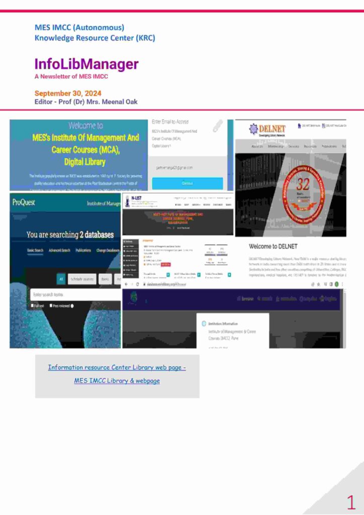 The InfoLibManager is an annual MES IMCC’s Knowledge Resource Center (KRC) newsletter. It highlights the additions to collections, academic and research activities, and programs conducted by the KRC during the year.