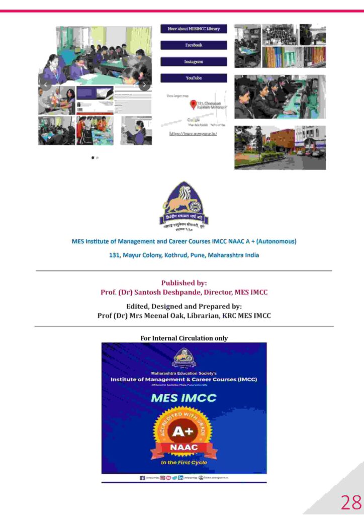 The libraries and the knowledge resource centers are continuously upgrading to match the situational changes in order to meet and exceed the ever growing expectations of the society. During the last academic year, MES IMCC Library and Knowledge Resource Center started providing additional access to e-resources including the World ebook database , N-list , ProQuest database and the IEEE ASPP database. Thus now an accessibility to a total ….e-resources with the Library web OPAC, library e-orientation, e book review competitions are the major highlights of MES IMCC Library and Resource Center .