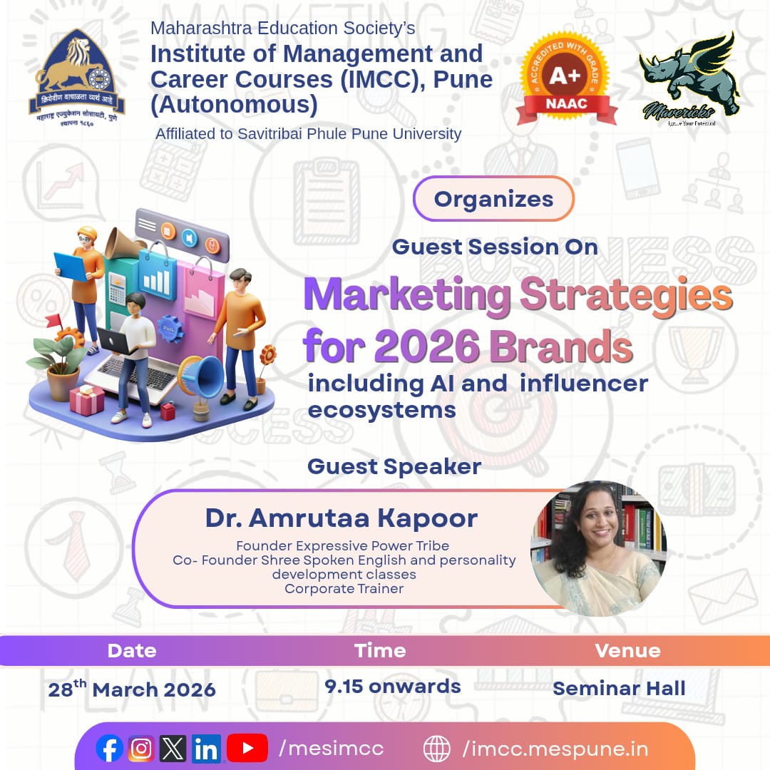 Guest Session was organised for MBA students by the Mavericks Club Marketing based on Marketing Strategies for 2026 Brands including AI and influencer ecosystems by Dr.Amrutaa Kapoor.