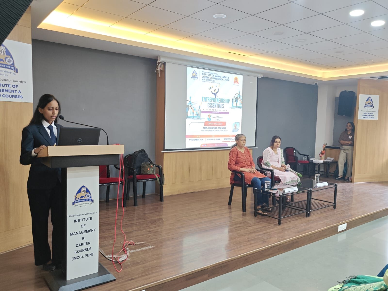 IMCC’s Startup & Innovation Cell successfully conducted a session on “Entrepreneurship Essentials – A Starter Session” on 1st November 2025. Our esteemed guest speaker Mrs. Manisha Gokhale, Program Manager at
