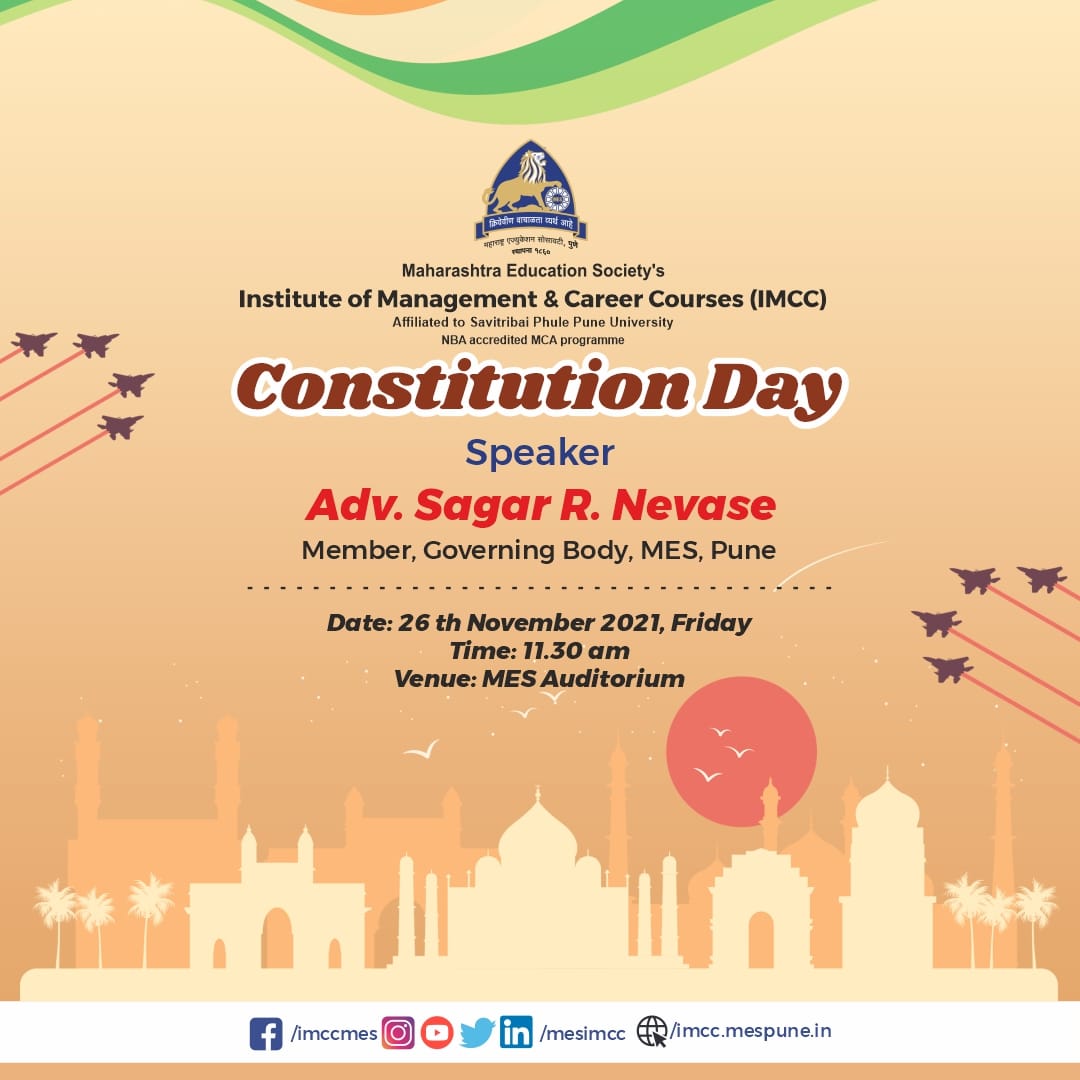 On the occasion of the Constitutional Day , the session of esteemed Adv Nevase is been organised in the MES Auditorium on 26th November 2021 at 11.30pm